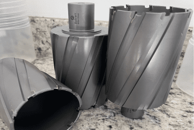 - Em comparação ao preço e durabilidade da broca helicoidal comum, a broca anular oferece um custo x benefício muito superior.